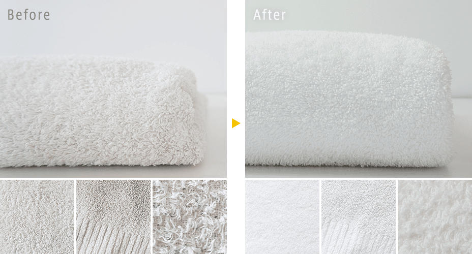 Kết quả? Chiếc khăn cũ kỹ được gửi trả lại khách hàng với diện mạo bông xốp, mềm mại gần như 90% so với lúc mới mua.